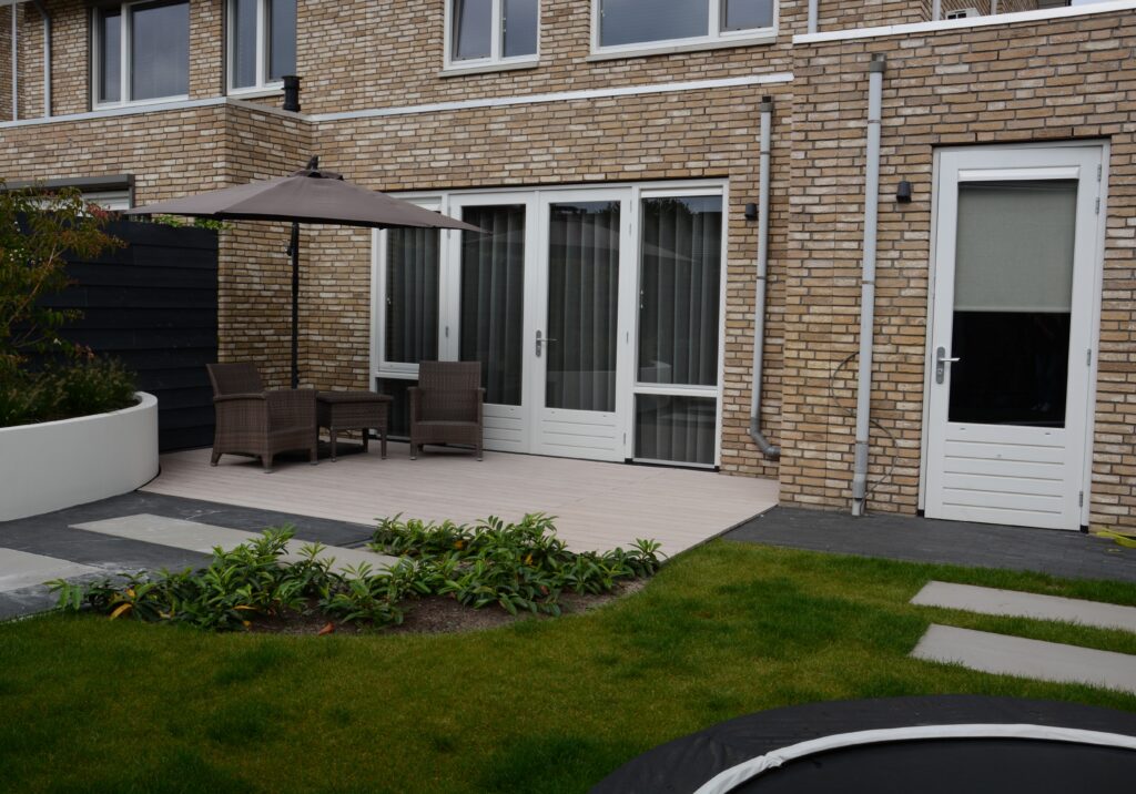 REFERENTIE: LICHT COMPOSIET TERRAS MET ZITGEDEELTE EN STRAKKE TUININDELING